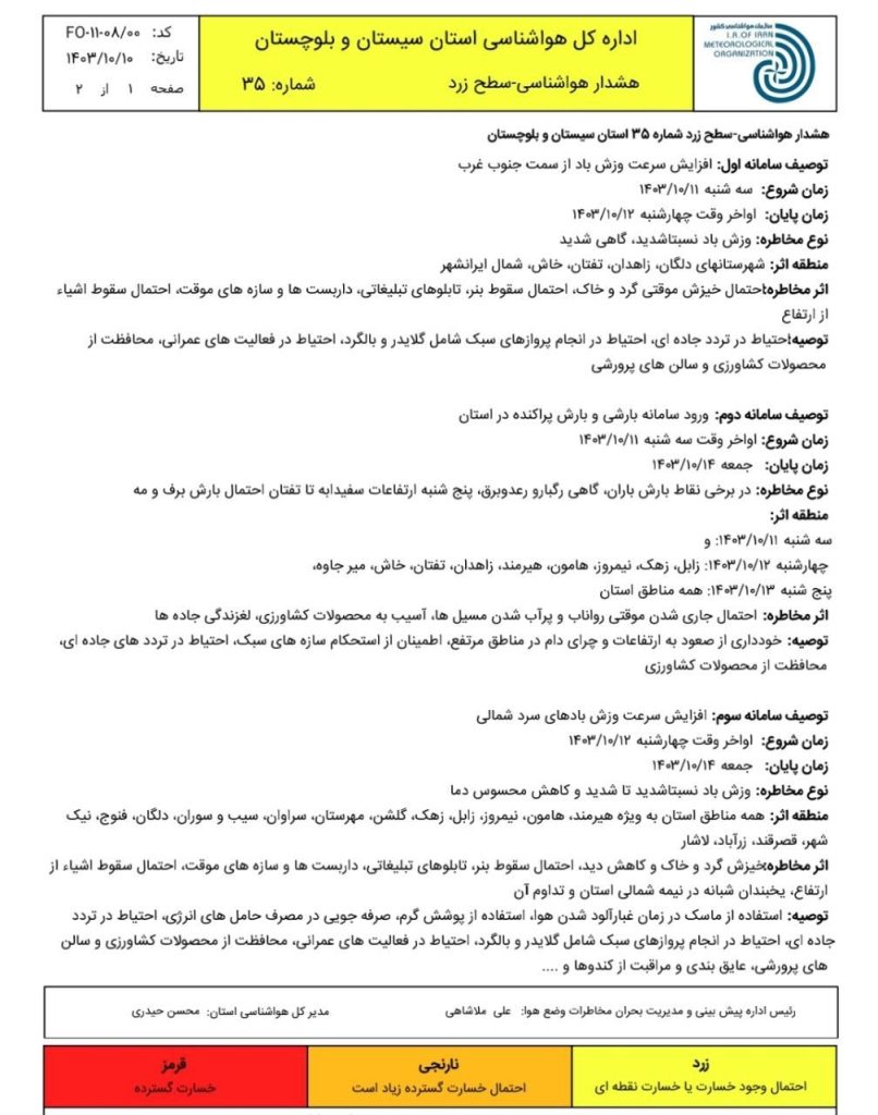 برچسب ها :باد، کاهش دما و باران ، زاهدان ، سیستان و بلوچستان ، هشدار سطح زرد ، هواشناسی